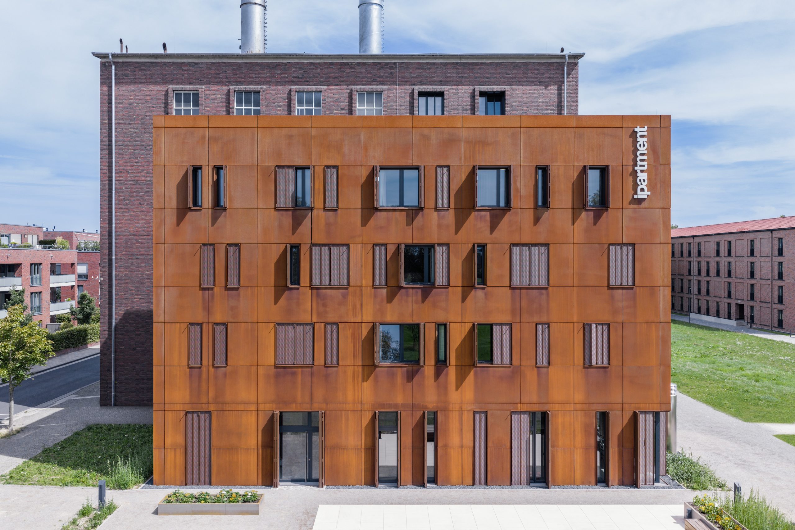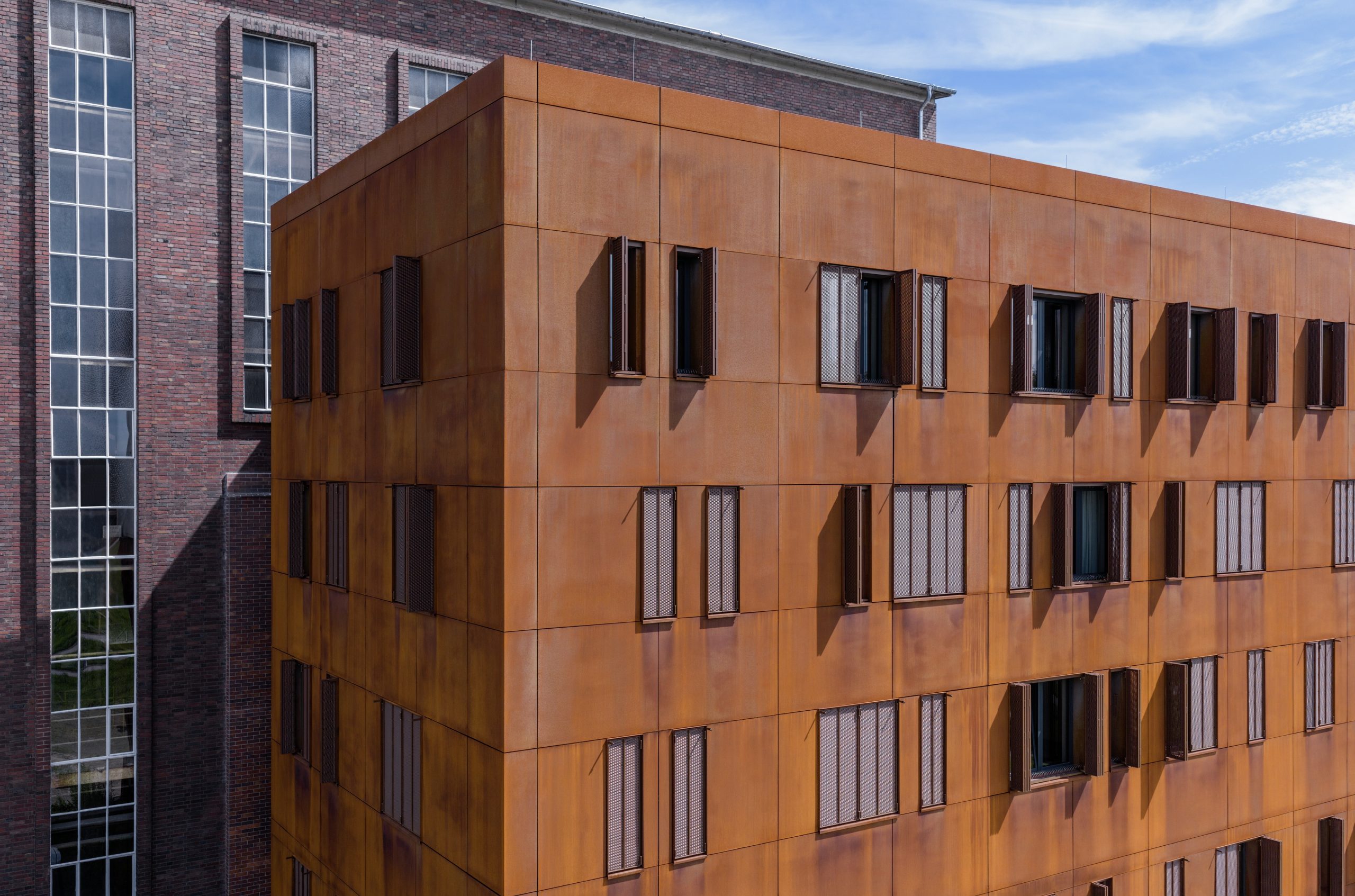 Réhabilitation de l’ancienne chaufferie de Leverkusen ; réemploi patrimonial et façade contemporaine avec les volets EHRET