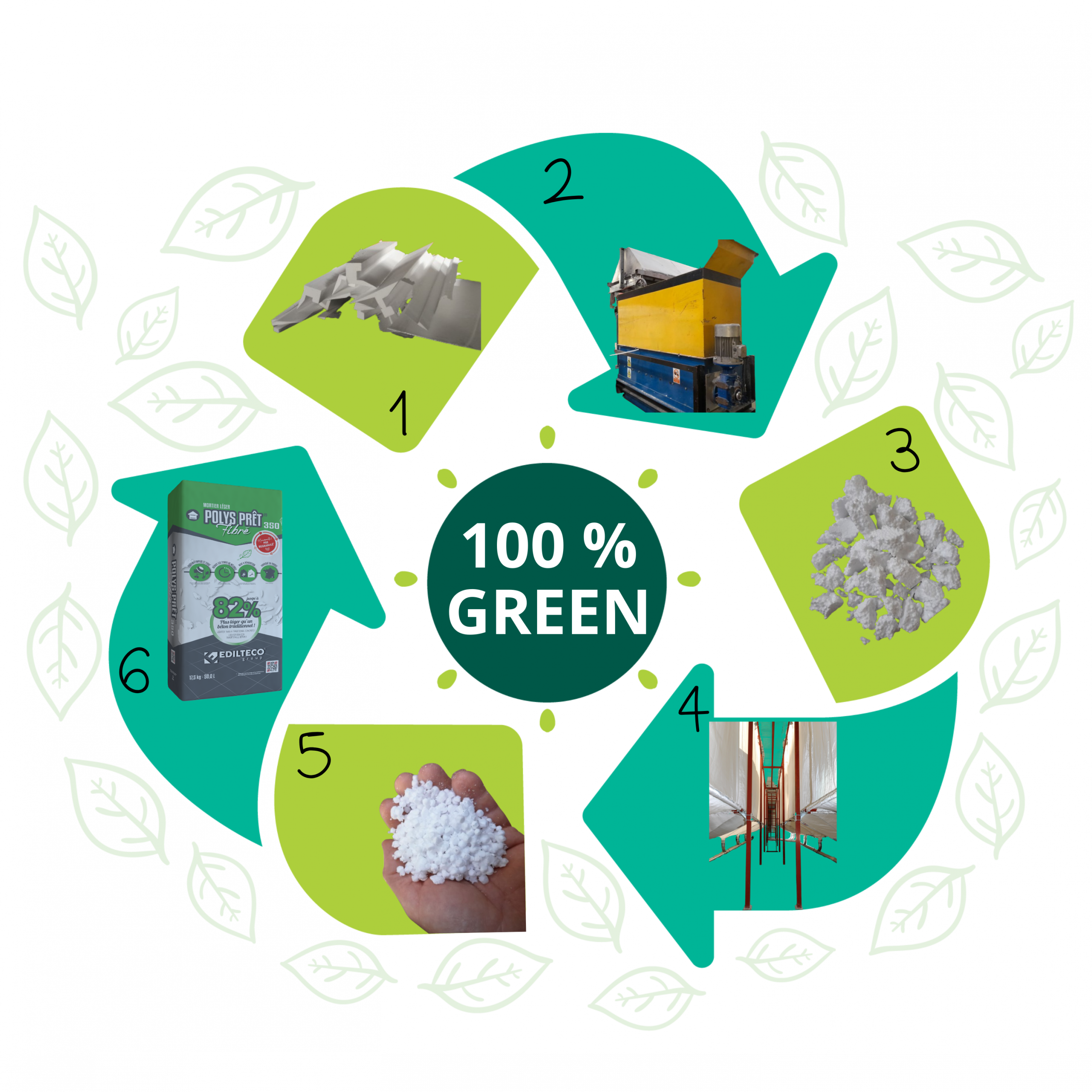 de retrouver leur structure d’origine et leurs propriétés initiales. Ainsi, EDILTECO® réutilise cette matière première sans compromis sur la qualité, tout en préservant les