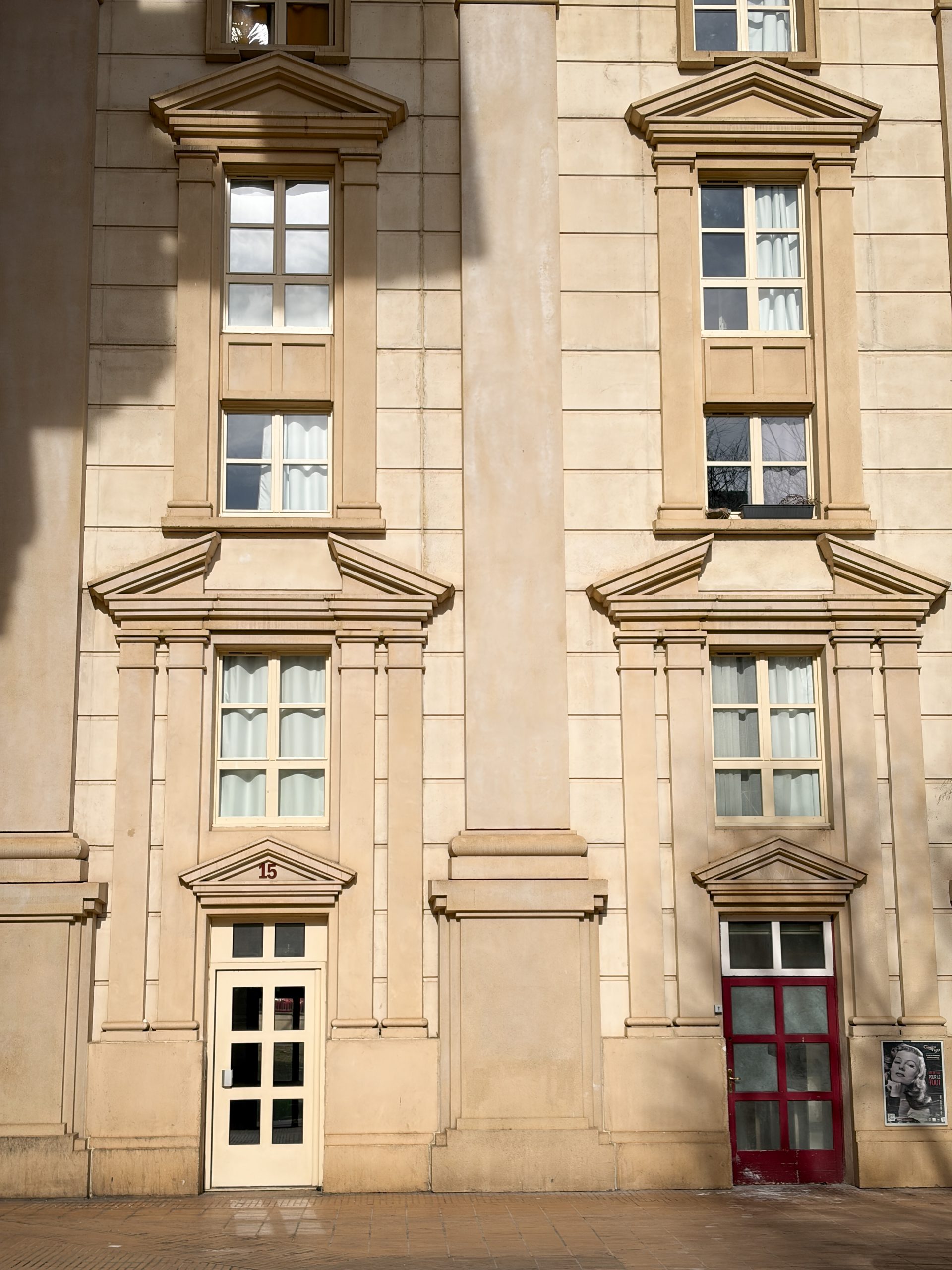 La résidence du Nombre d’Or doit en effet son nom au respect strict des proportions du “nombre d’or” dans la composition de façade : baies, fenêtres et ornements (pilastres, frontons, entablements, appuis) ont été conçus selon une géométrie rigoureuse, avec des fenêtres ordonnées verticalement, structurées à partir d’un module carré, et des proportions exprimées notamment par la présence de petits bois.