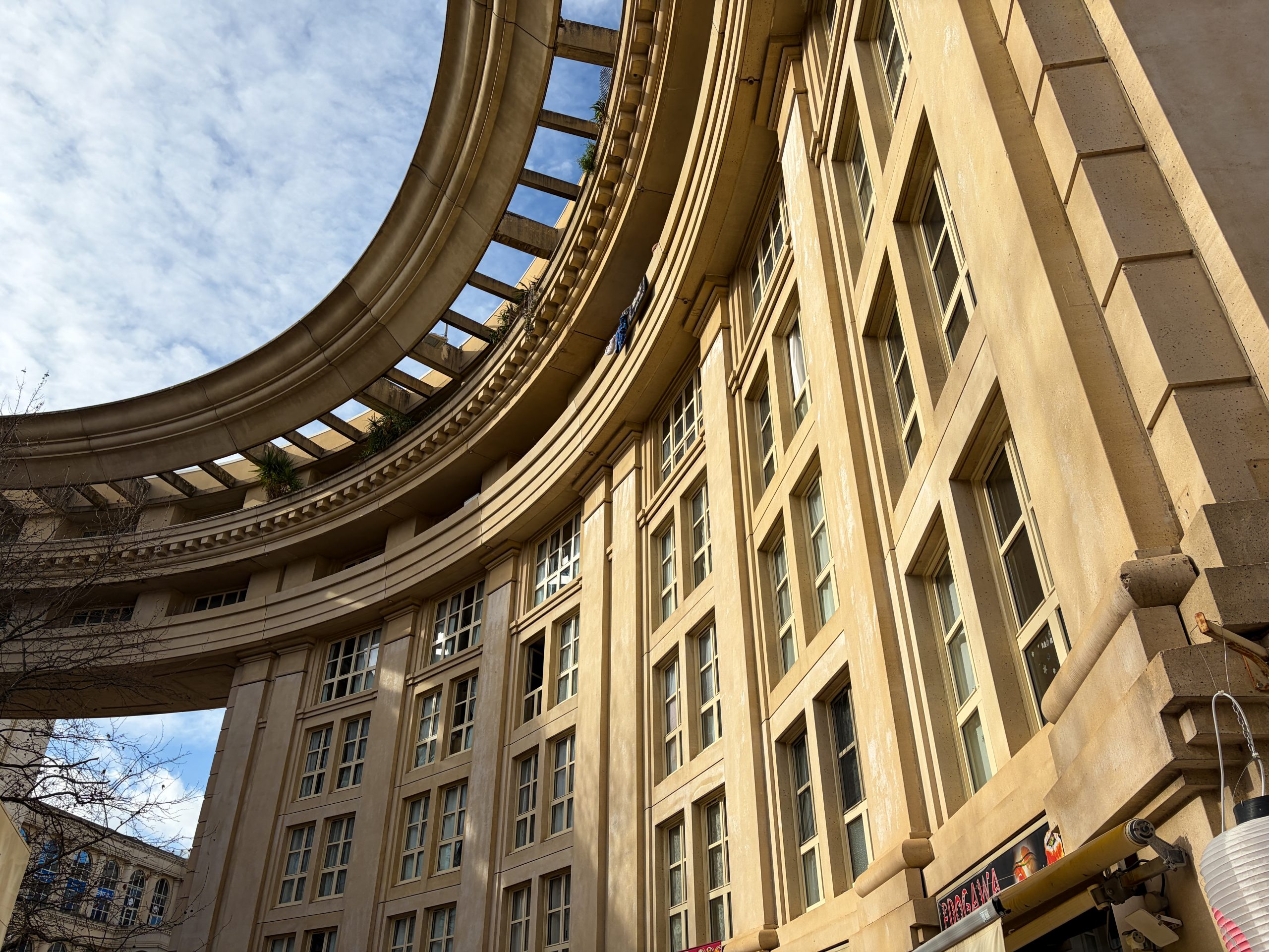 Construite en 1984 par l’architecte Ricardo Bofill, cette résidence en R+6, complétée de locaux tertiaires en rez-de-chaussée, s’inscrit dans une oeuvre urbaine monumentale qui fait partie du paysage montpelliérain.