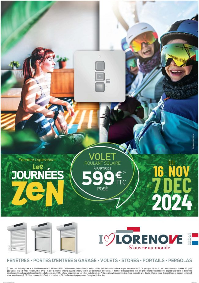Le réseau Lorenove – et les points de vente participants – clôturent l’année 2025 en beauté avec une dernière campagne promotionnelle dédiée aux particuliers : les Journées Zen.Cette opération, qui se déroulera du 16 novembre au 7 décembre 2024, met exclusivement à l’honneur les volets roulants solaires, un produit plébiscité pour ses multiples avantages en termes…